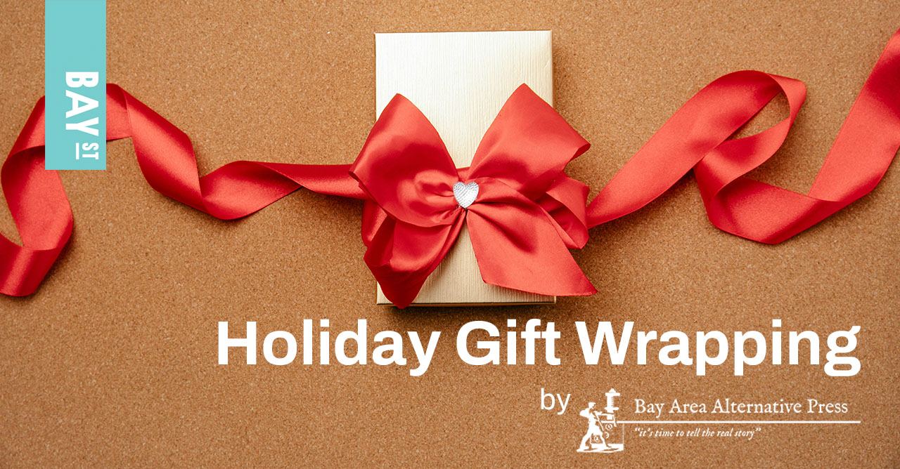 This holiday season, BAAP is delighted to offer complimentary gift-wrapping at the plaza of Bay Street Emeryville – a festive service staffed by volunteers and offered thanks to the generosity of the community. While the wrapping is free, we welcome donations of any amount to support BAAP’s mission of strengthening independent media and supporting community voices. Proceeds help BAAP continue providing volunteer printing, design, and publishing support to low-income workers and grassroots organizations across the Bay Area.